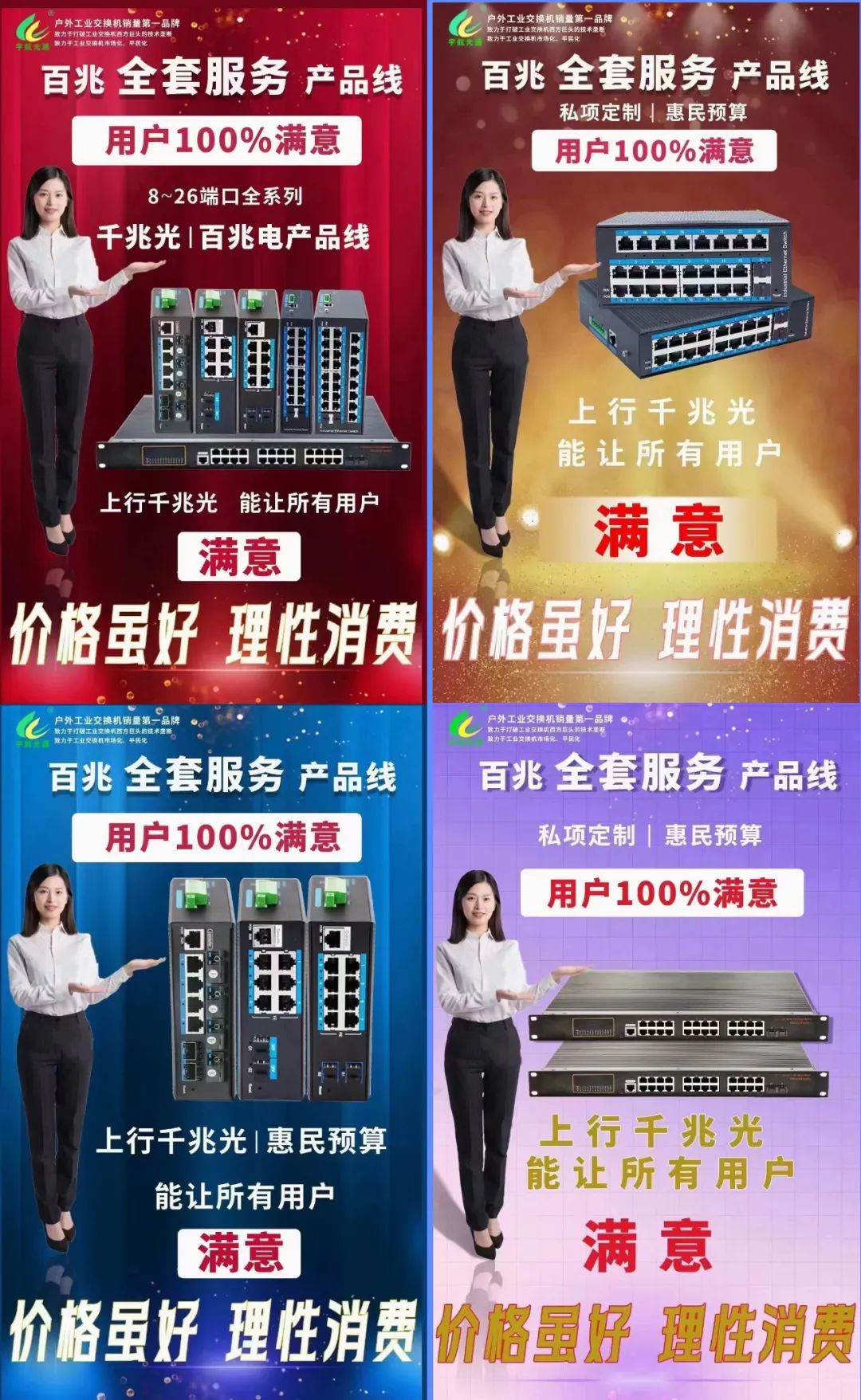 宇航工業(yè)交換機立足工業(yè)領(lǐng)域帶寬小,性能要求高,為了解決價格壓力大市場痛點,宇航工業(yè)交換機推出全系列2層管理全套服務(wù)千兆光百兆電產(chǎn)品線!私項定制、惠民預(yù)算,能滿足100%工業(yè)領(lǐng)域小帶寬市場要求。同時,也讓用戶100%滿意!