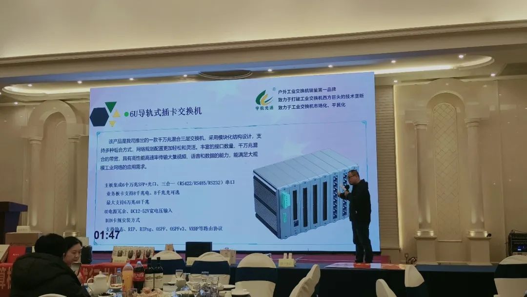地市交流會上,宇航工業交換機區域負責人給大家介紹了公司以及公司的產品,也詳細分析了工業交換機和商業交換機的區別,同時也向匯報了公司的現狀和未來的發展。宇航光通是聚焦在工業交換機生產和銷售的企業,上千個產品規格,上萬個型號,被稱為工業交換機“沃爾瑪”。目前,宇航大概參加了3500個大大小小的工程項目,產品輻射40多個國家和地區,目前在連接運行的設備超過了800萬臺。