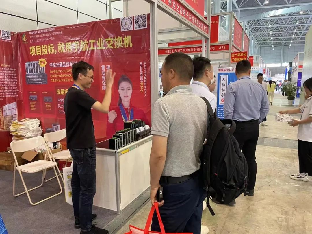 活動(dòng)現(xiàn)場(chǎng),宇航工業(yè)交換機(jī)的展區(qū)成為了眾多參觀者的熱門打卡地。嘉賓們對(duì)宇航全國(guó)產(chǎn)工業(yè)交換機(jī)表現(xiàn)出濃厚的興趣紛紛駐足圍觀,咨詢產(chǎn)品詳情,與工作人員深入交流。現(xiàn)場(chǎng)氣氛熱烈,人流如織。