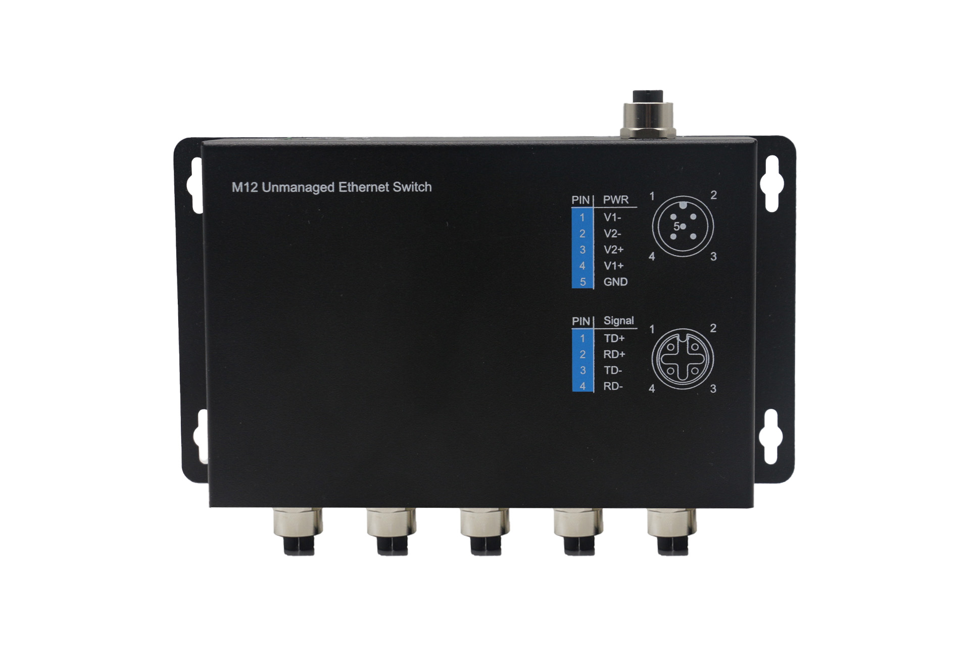 | 電口 | 5個M12 A-coded 4-pin母頭接頭 |